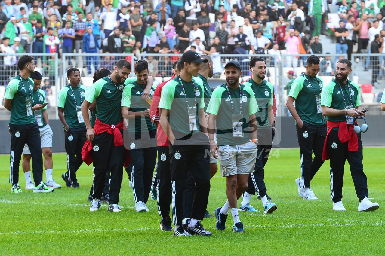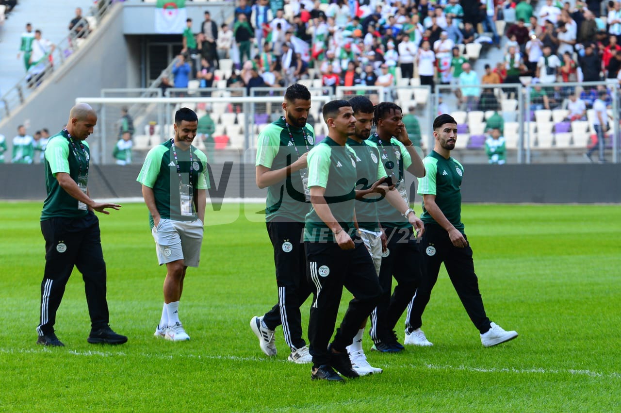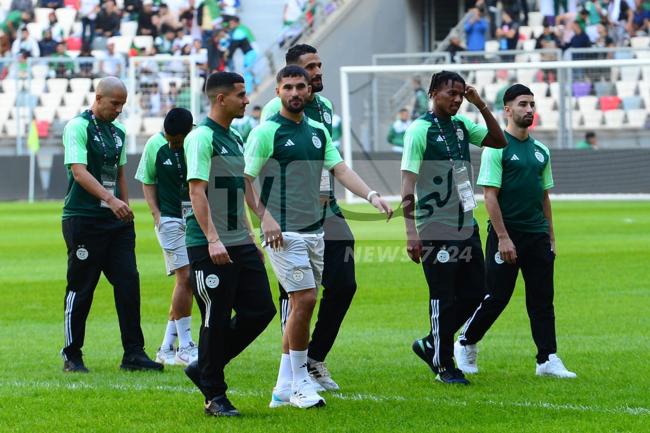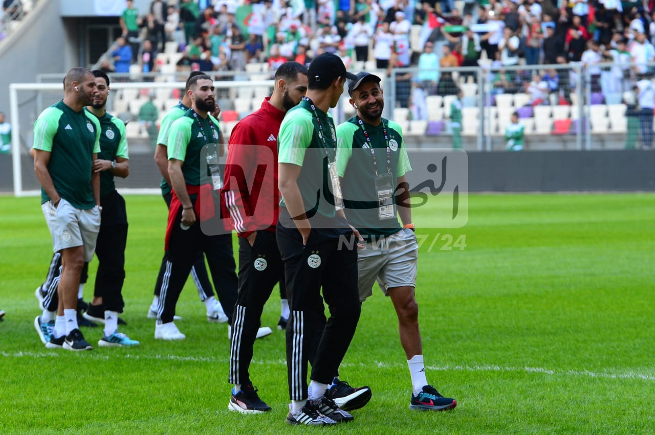 بالصور.. محرز ورفقائه يتفقدون أرضية ملعب “نيلسون مانديلا” قبل مواجهة الصومال