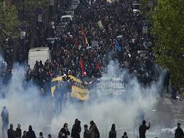 بالصور.. مظاهرات عارمة بفرنسا وحكومة ماكرون تلجأ للغازات المسيلة للدموع