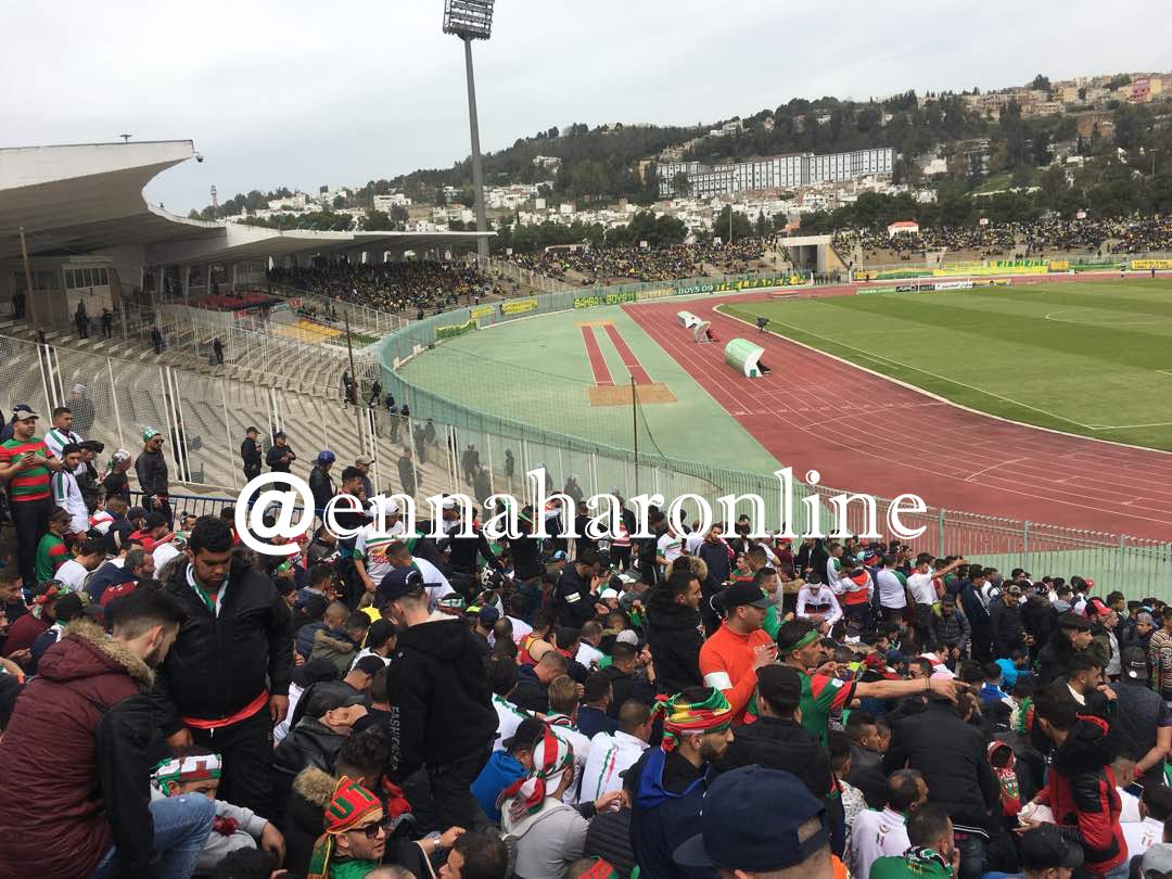 وشهد ملعب الشهيد حملاوي توافد الآلاف من أنصار الفريقين، ما تسبب في فوضى كبيرة أمام المدخل الرئيسي للملعب وتسجيل عدة إصابات.