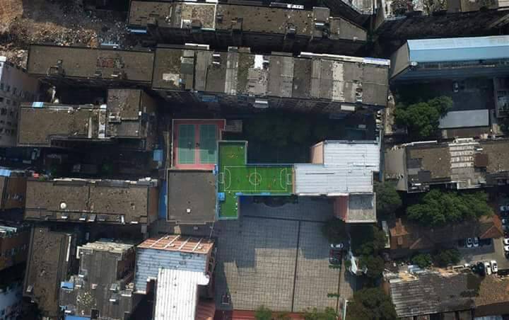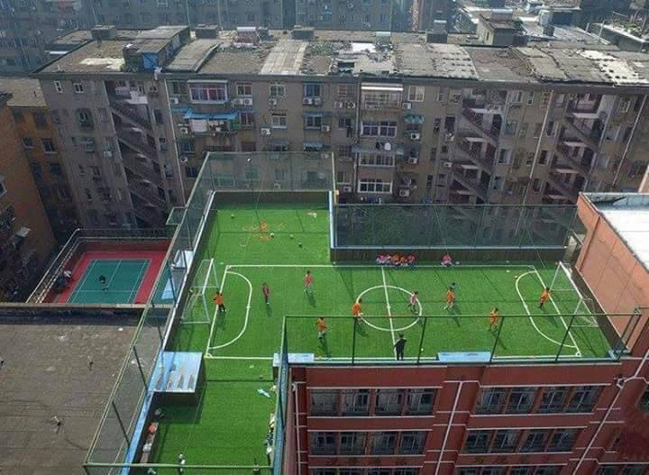 كرة القدم آفيون الشعوب، وهذا ما جعل مدرسة “صينية” بوسط مدينة “ناتشانغ” إلى بناء ملعب على سطح عمارة.