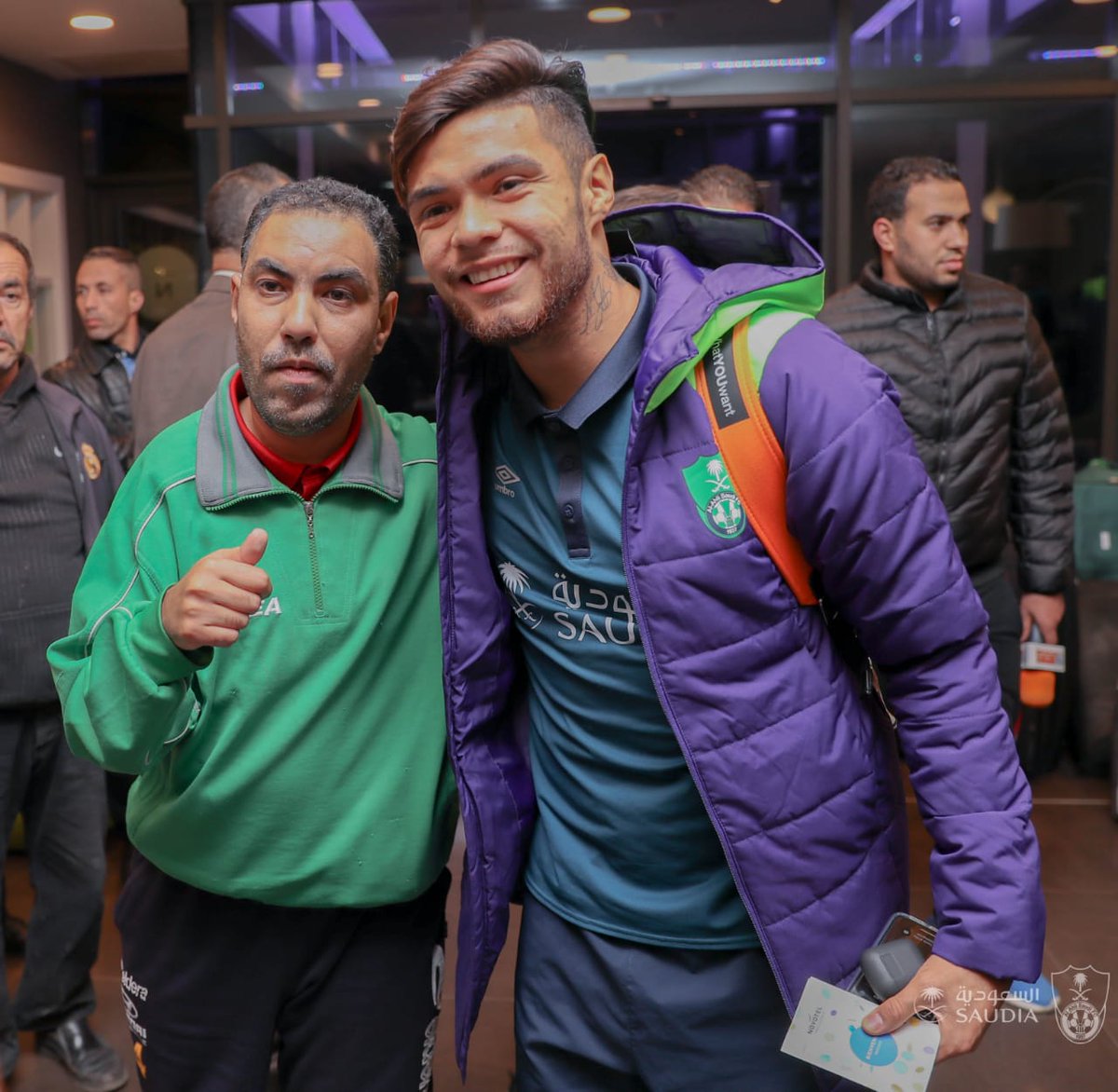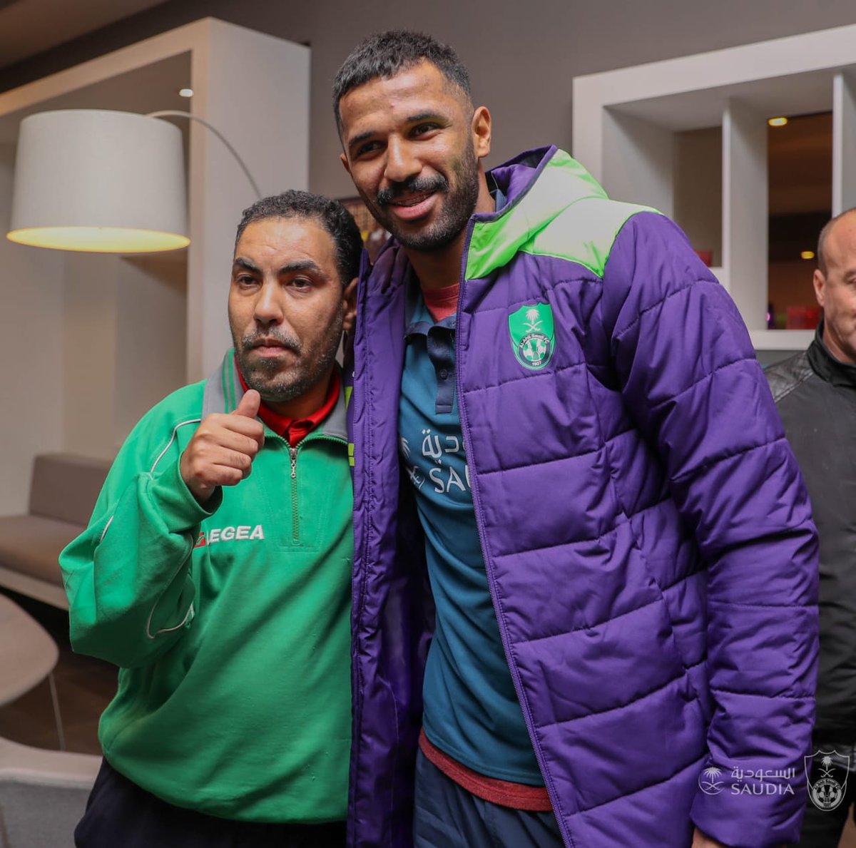 أصر مناصر سطايفي من ذوي الإحتياجات الخاصة على زيارة وفد فريق أهلي جدة السعودي بمقر إقامته بولاية سطيف.