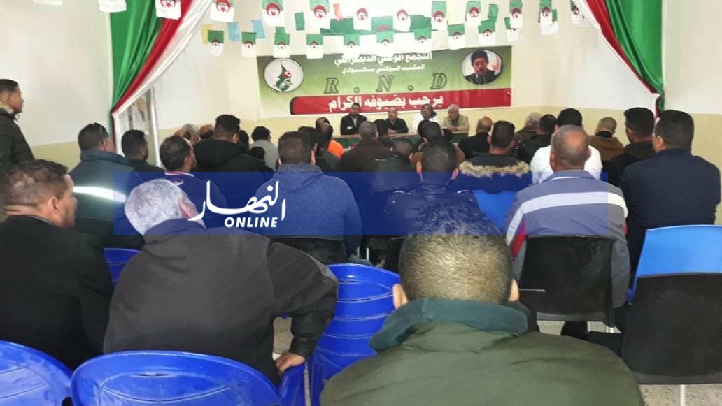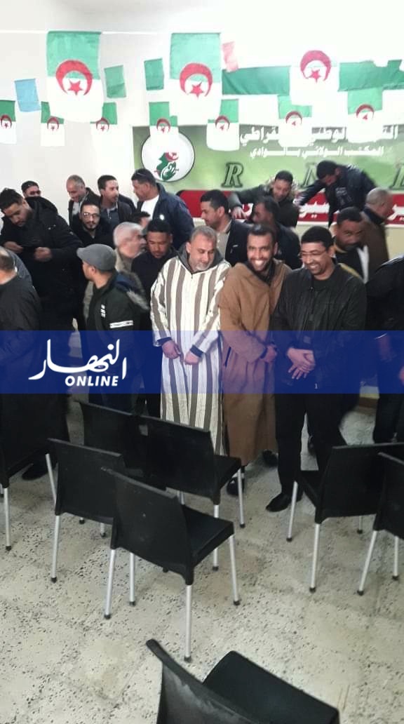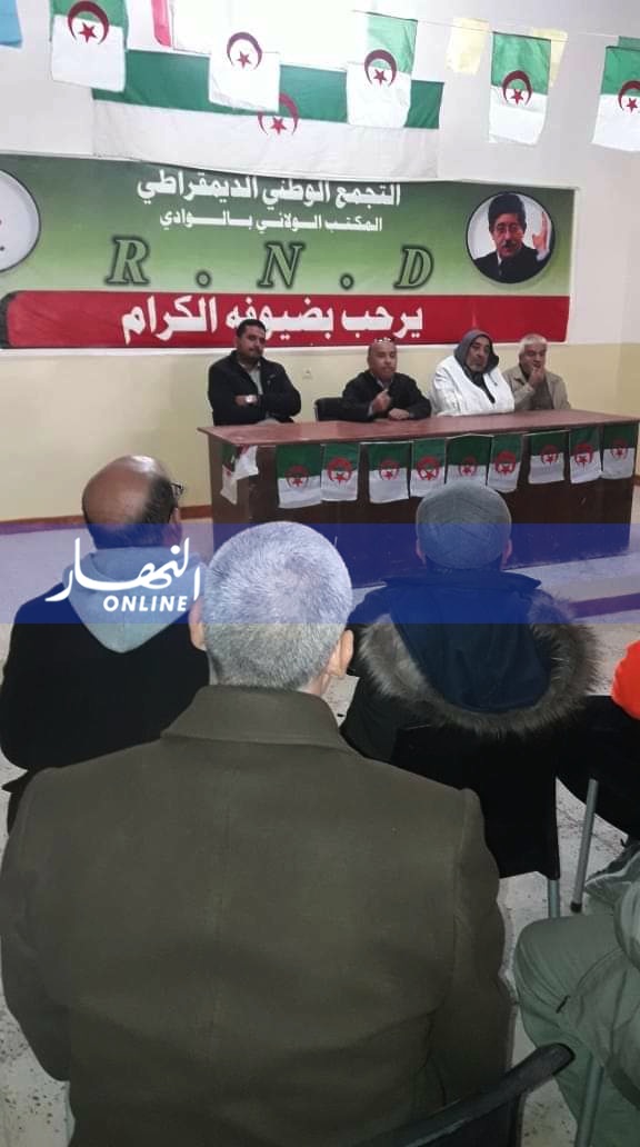 نظم مناضلو حزب التجمع الوطني الديمقراطي بولاية الوادي وقفة احتجاجية أمام المقر الولائي للحزب.