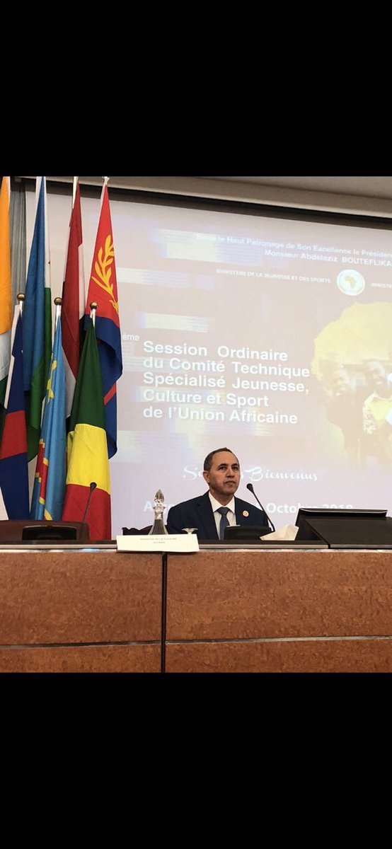حضر وزيرر الثقافة، عز الدين ميهوبي، اليوم مؤتمر الدورة الثالثة للجنة الاتحاد الإفريقي الفنية المتخصصة للشباب والثقافة والرياضة بنادي الصنوبر في العاصمة.