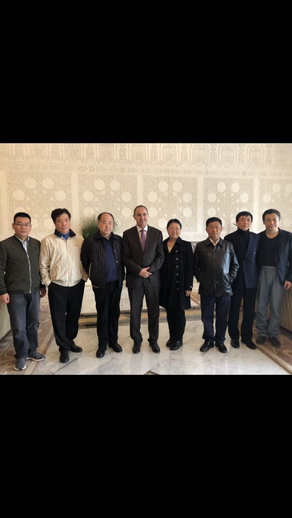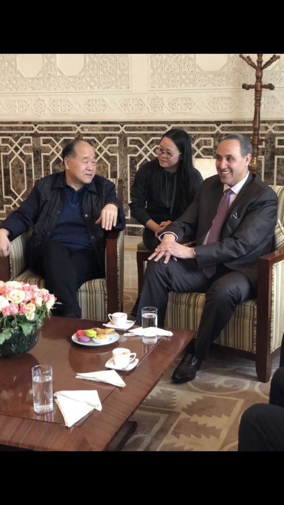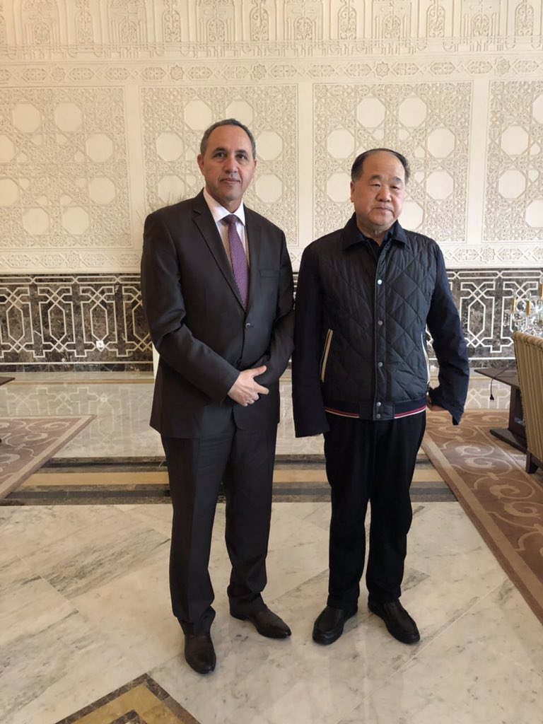 حيث قال الوزير في تغريدة له عبر صفحته بالتويتر: “إستقبلت اليوم الكاتب الصيني الكبير “مو يا Mo Yan”، الحائز على نوبل للآداب 2012..” .
