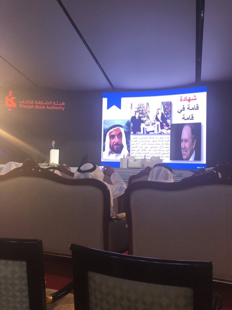 بالصور.. ميهوبي يلقى محاضرة خلال معرض الشارقة للكتاب