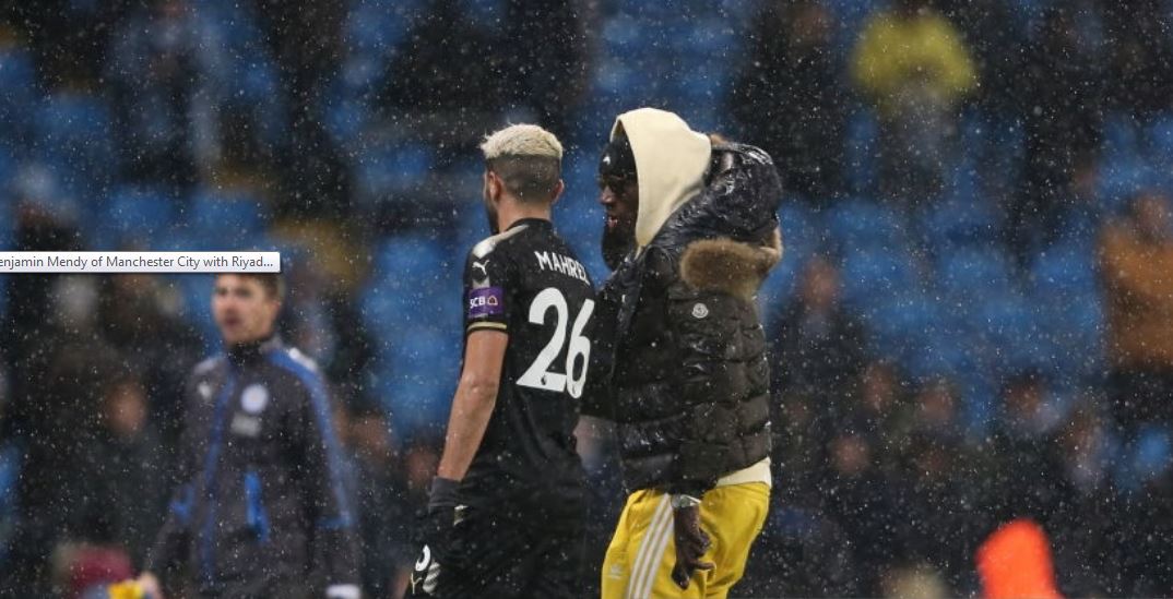 توجه اللاعب الدولي الفرنسي بنجامين ماندي مُباشرة بعد نهاية لقاء أمسية اليوم السبت الذي جمع فريقه مانشستر سيتي بنادي ليستر سيتي صوب محرز.