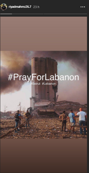 ونشر كل من رياض محرز، إسماعيل بن ناصر، يوسف عطال، ياسين بن زية، عدلان قديورة صورا للراية اللبنانية تضامنا مع ضحايا الإنفجار الذي خلف 113 قتيل وحوالي 4 آلاف جريح.