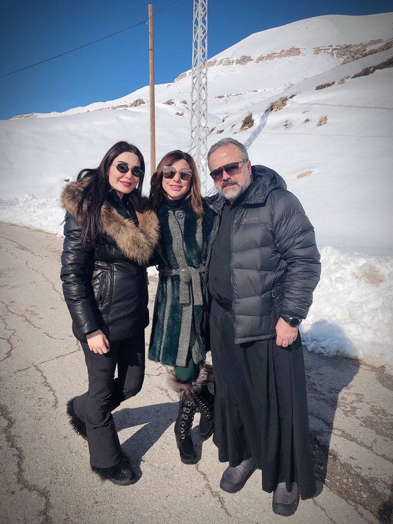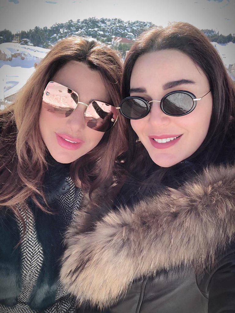 بالصور ..نجوى كرم تستمتع بالثلج مع سيرين عبد النور