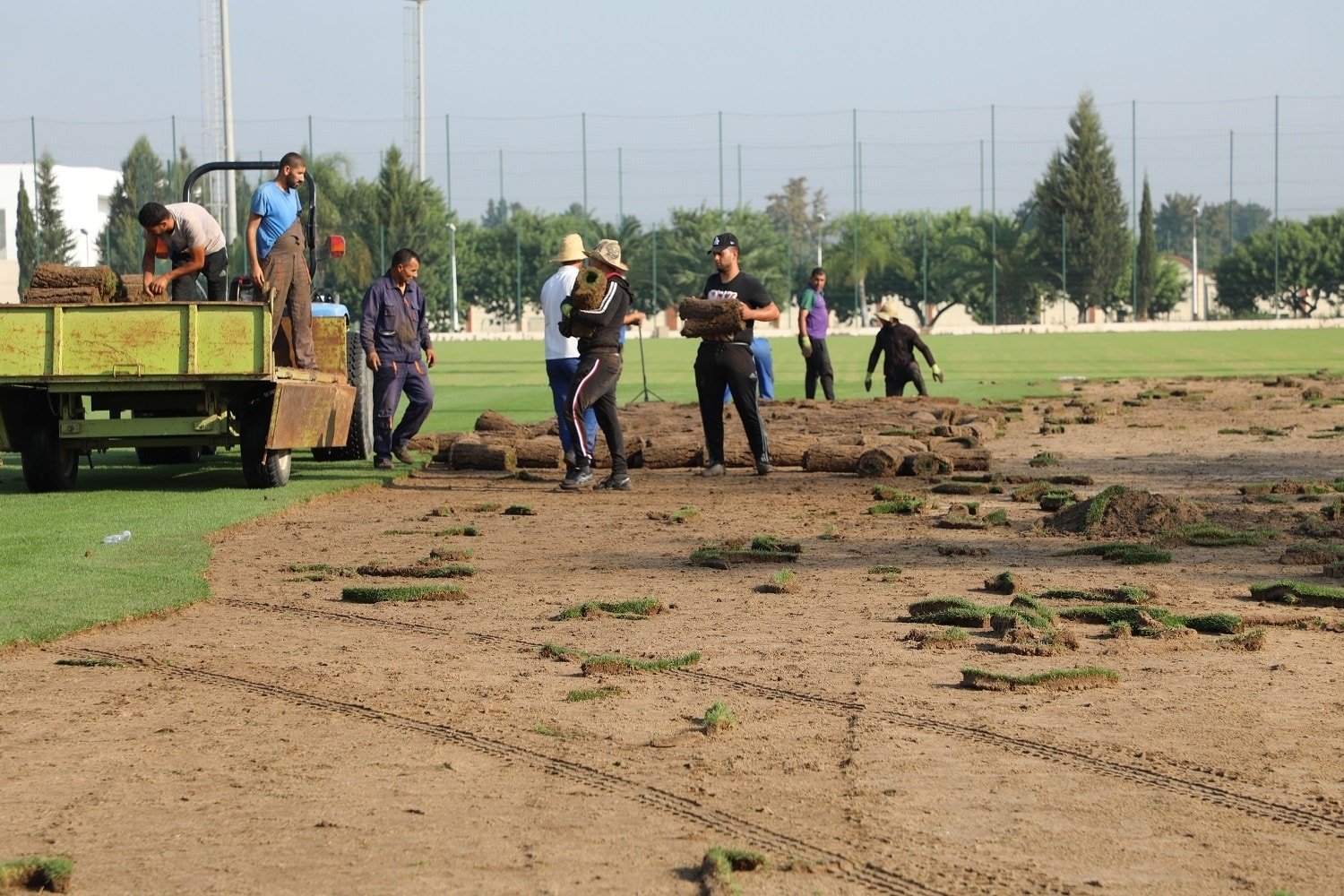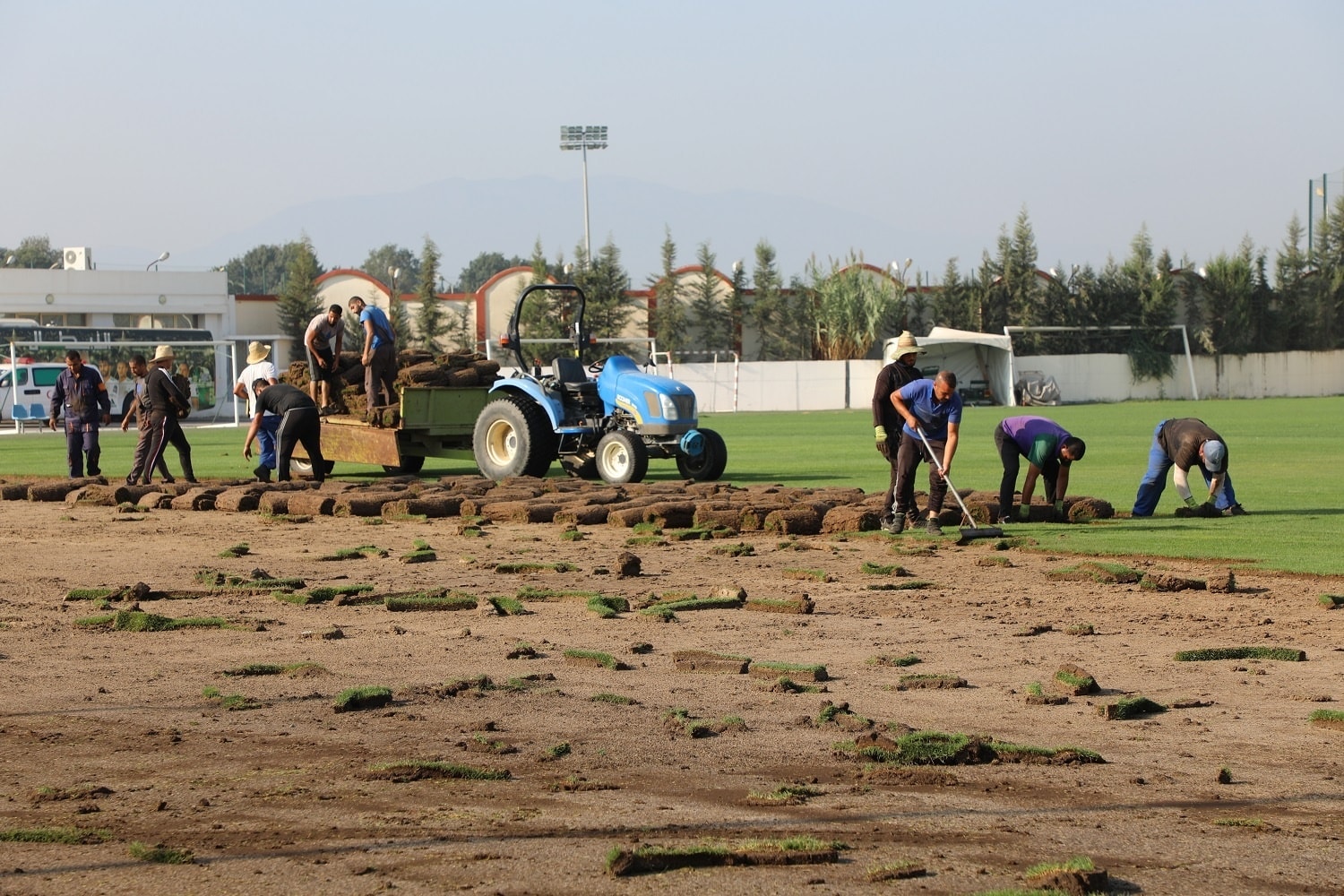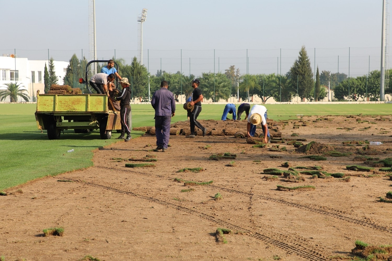 حيث قام فريق الصيانة بنقل العشب الطبيعي لملعب التدريبات (T2) بالمركز التقني بسيدي موسى الى ملعب خميس مليانة، وذلك في إطار عملية تجديد ملاعب المركز.