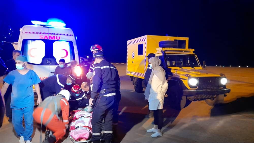 وقالت الحماية المدنية بالبيض أنها أجرت عملية إجلاء طبي استعجالية من ولاية البيض إلى مستشفى بولاية الجزائر العاصمة لنقل 4 ضحايا في حالة خطيرة.