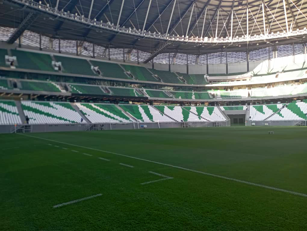 وظهر الملعب المونديالي في أبهى حلة، قبل استقبال المواجهة بين الخضر والبلاك ستارز، في إطار تحضيراتهما لـ”الكان 2021″ في الكاميرون.
