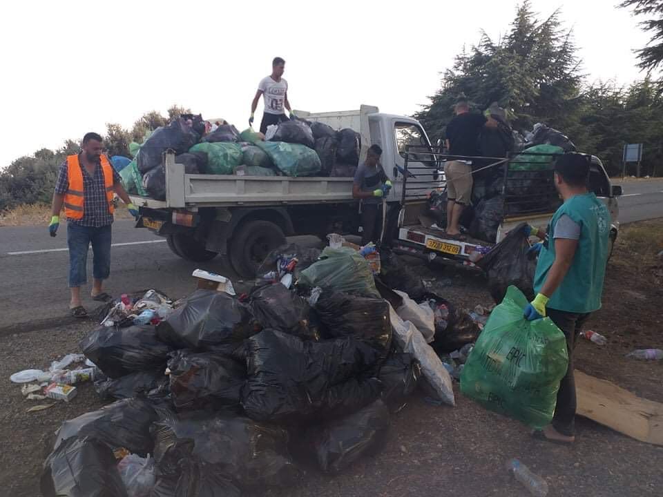 العملية جمع خلالها النفايات والقمامات التي عزت الغابة، والتي بتركها زوار الغابة بعد استمتاعهم بيوم جميل وسط الاشجار والطبيعة الخلابة.