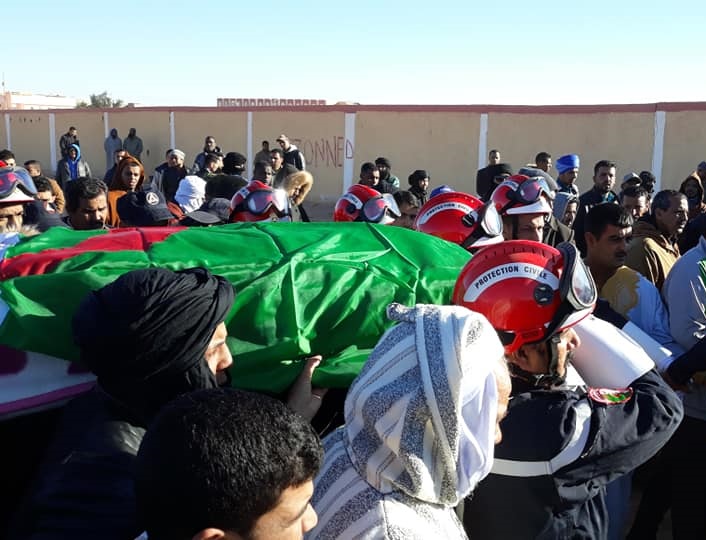 تم  صبيحة اليوم تشييع جنازة شهيد الواجب الوطني عون الحماية المدنية عبد الحميد بوبكر بمقبرة موساني بتندوف.