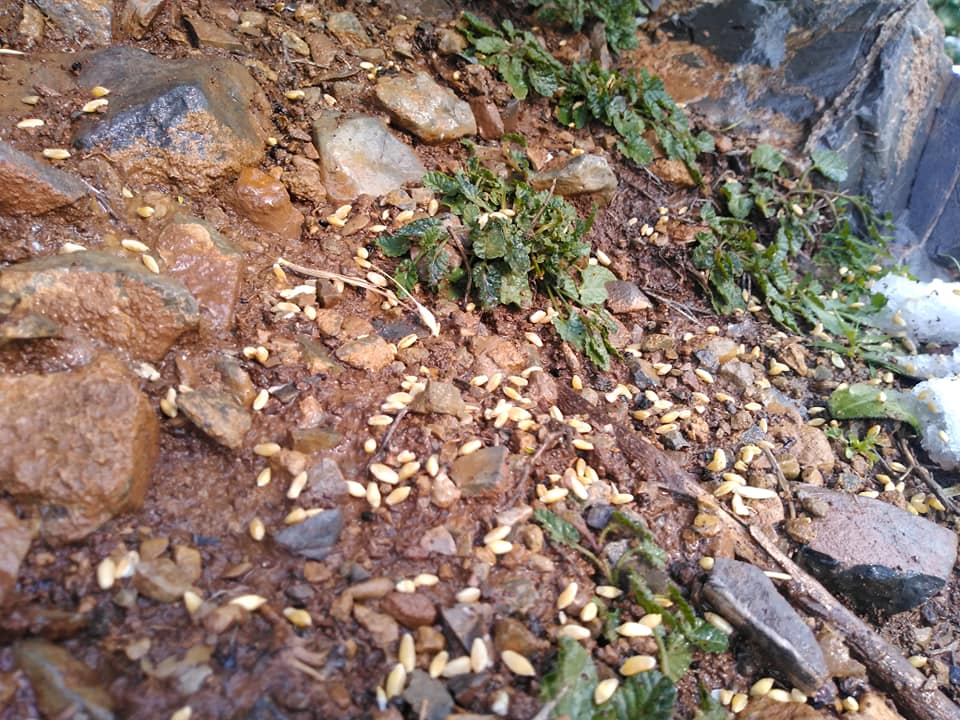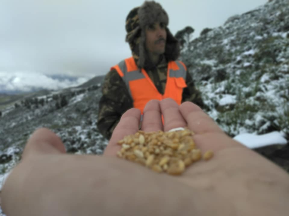 حيث قام مجموعة من الشباب المنتمين بذات الجمعية، بإلقاء كميات من القمح على مستوى أعالي الجبال لتتغذى منها الطيور الجائعة.