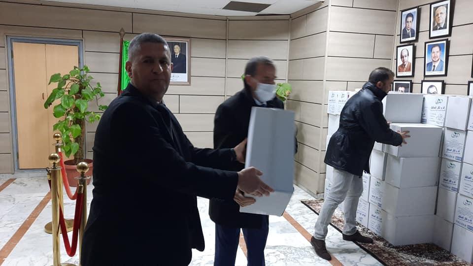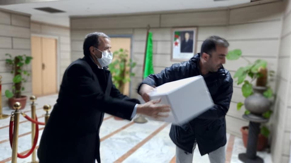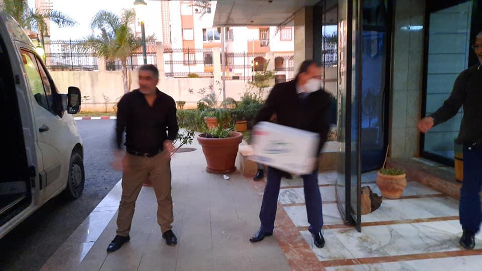 بالصور.. وزير التجارة يقف شخصيا على تحميل هبة من شركة “Lingettes Humides ” للصناعة