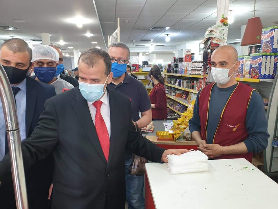 قام وزير التجارة اليوم الخميس بحملة تحسيسية ميدانية للتجار وكذا المواطنين وذلك بتوزيع الكمامات والحث على إلزامية استعمالها.
