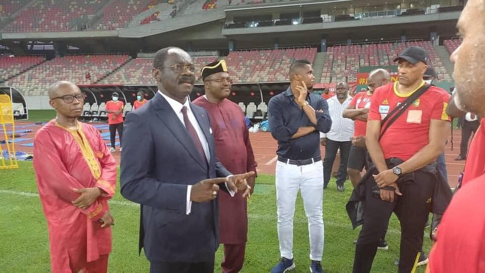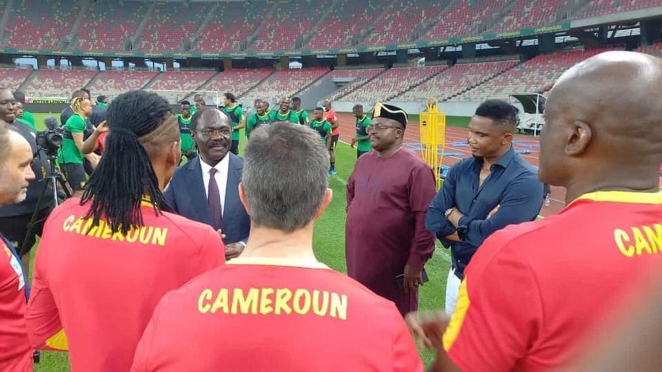بالصور.. وزير الرياضة الكاميروني يزور تدريبات منتخب بلاده بحضور إيتو