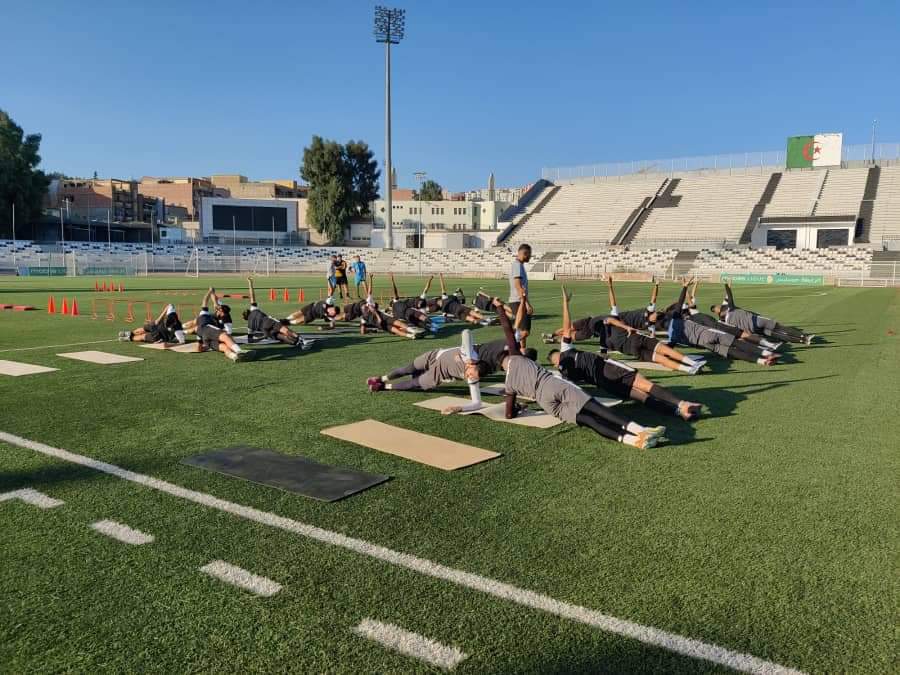 وأجرى تععداد الوفاق، أمسية اليوم الجمعة، أول حصة تدريبية بملعب “8 ماي 1945″، بعد عودتهم من تربص تونس.