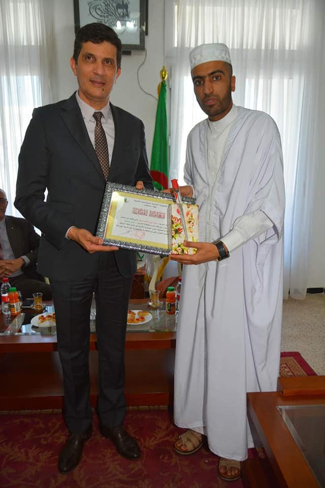 أشرف والي ولاية مستغانم رابحي محمد عبد النور اليوم الخميس على حفل تكريم ومنح شهادات تقديرية للمقرئ عبدلي توفيق.