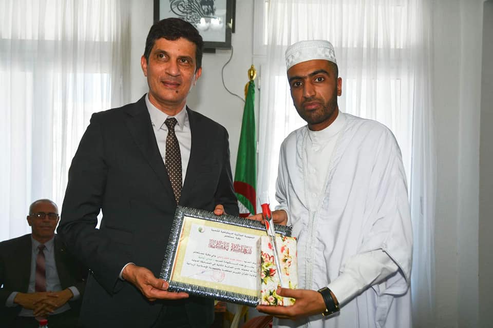 بالصور.. ولاية مستغانم تكرم المقرئ عبدلي توفيق والتلميذة بلكحل منى رباب