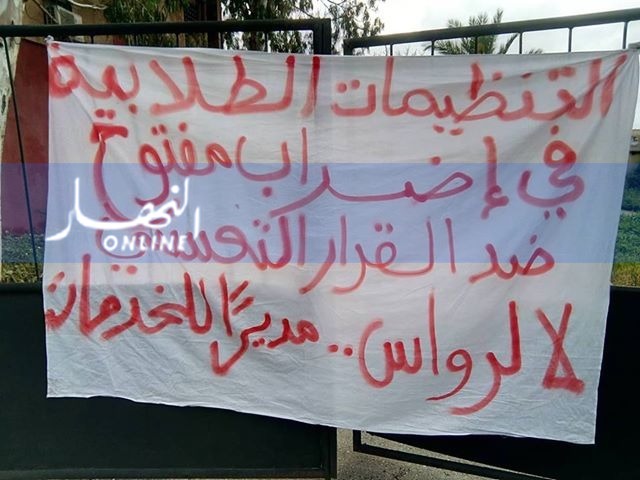 ممثلي الطلبة المحتجين طالبوا برحيل المدير الجديد لعدم قدرته ومعرفته بأمور تسيير القطاع حسبهم.