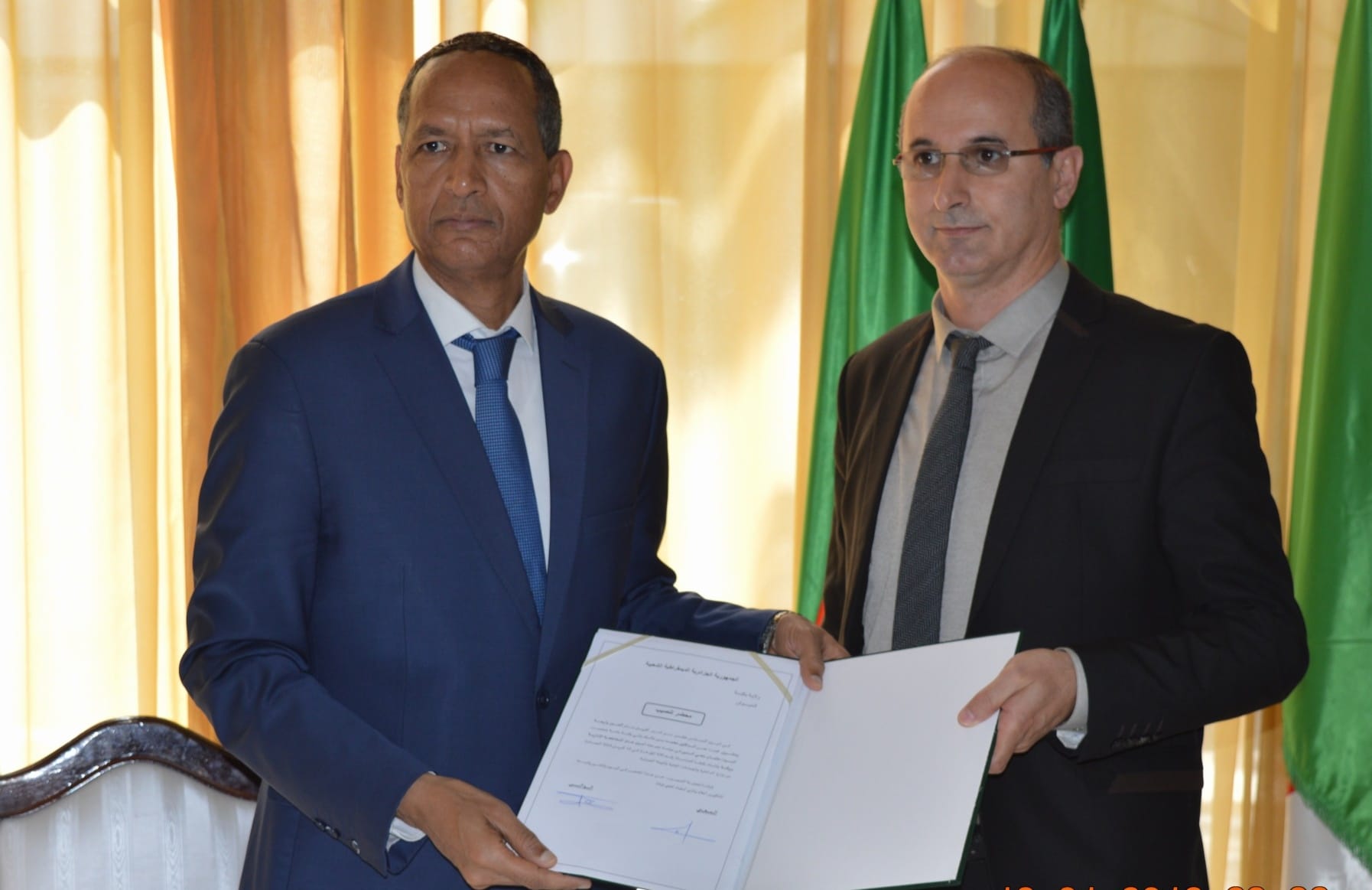 عادل رحايل بصفته أمينا عاما للمقاطعة الإدارية قصر الشلالة بولاية تيارت.
