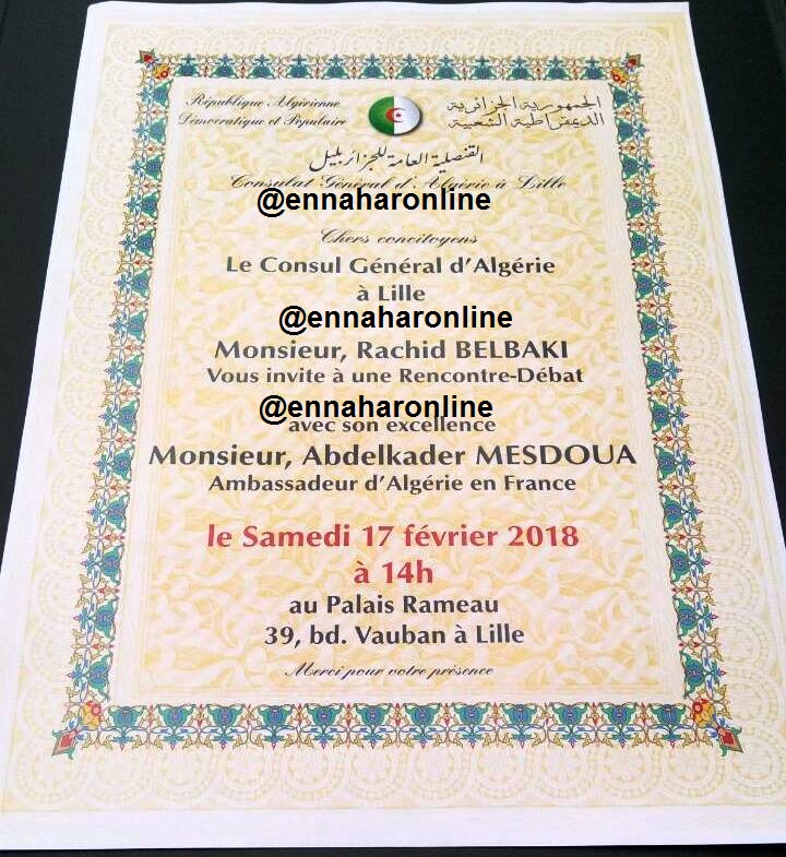 حيث لبى سفير الجزائر دعوة القنصل العام للجزائر بمدينة ليل الفرنسية، رشيد بلباقي، والمعروف بالثقة المتبادلة مع الجالية الموجودة بالمقاطعة.