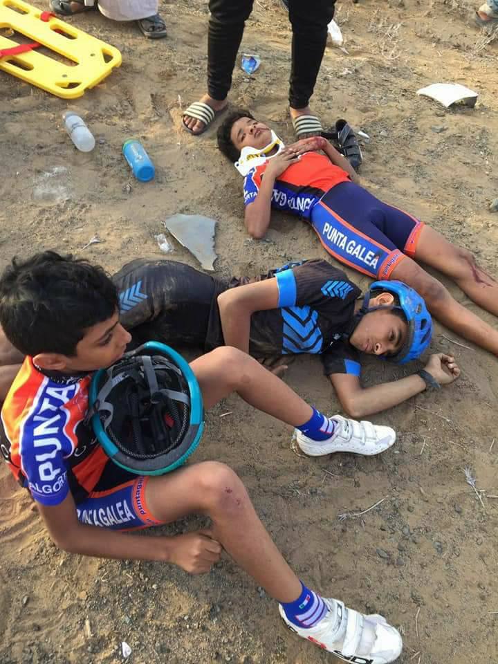 وتداول رواد مواقع التواصل الاجتماعي عدد من الصور التي أظهرت دراجات محطمة وإصابات طالت بعض الرياضيين.