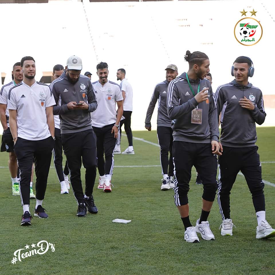 تفقد لاعبي المنتخب الوطني، اليوم الإثنين، أرضية ملعب حمادي العقربي برادس في العاصمة التونسية.
