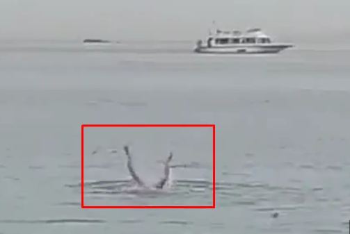 وفجأة توقف تناثر الماء، وعاد رأس السائح الروسي إلى السطح. وظهر في الفيديو وكأنه يتحرك في الماء مرة أخرى، ولكن ببطء.