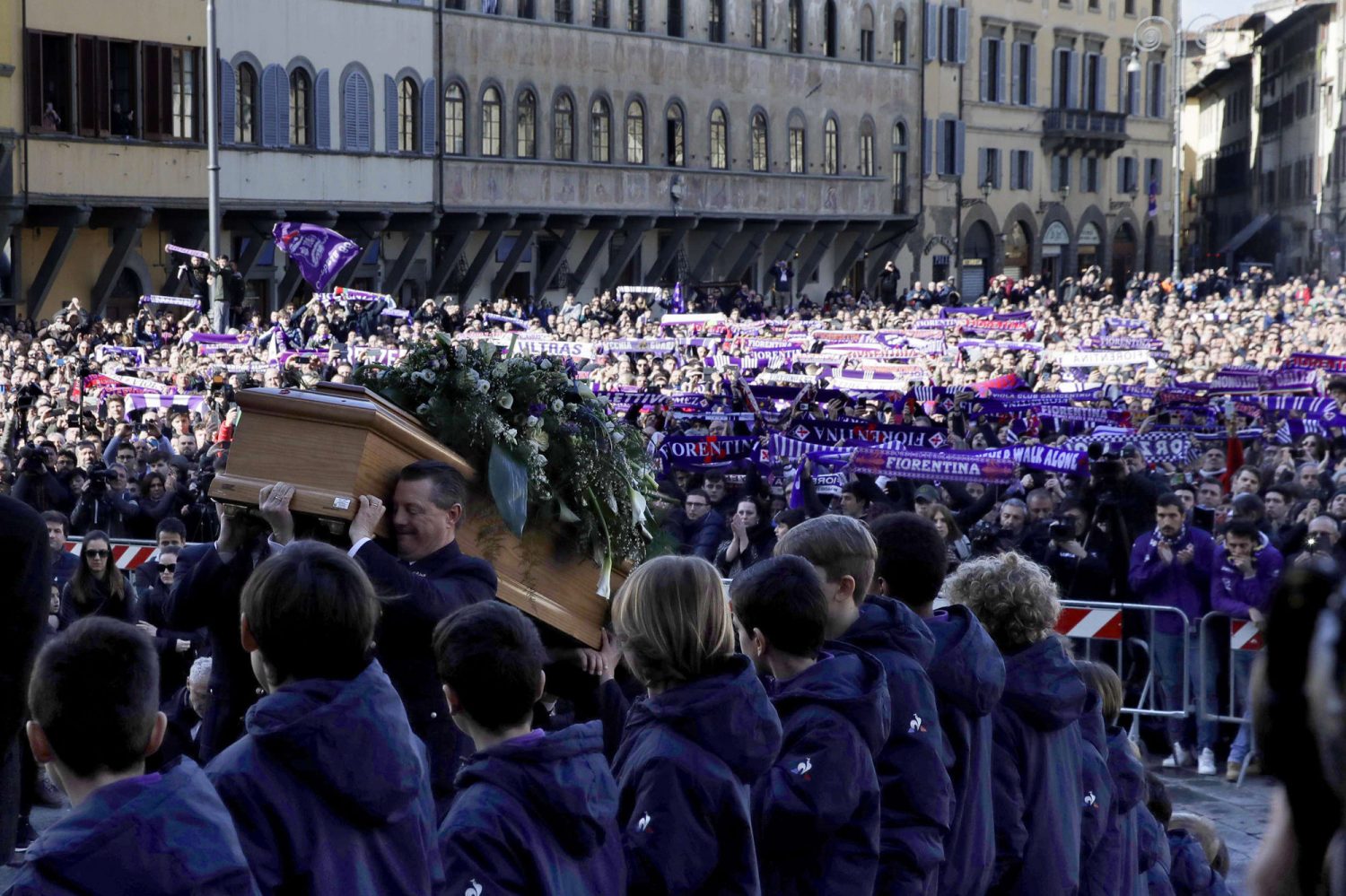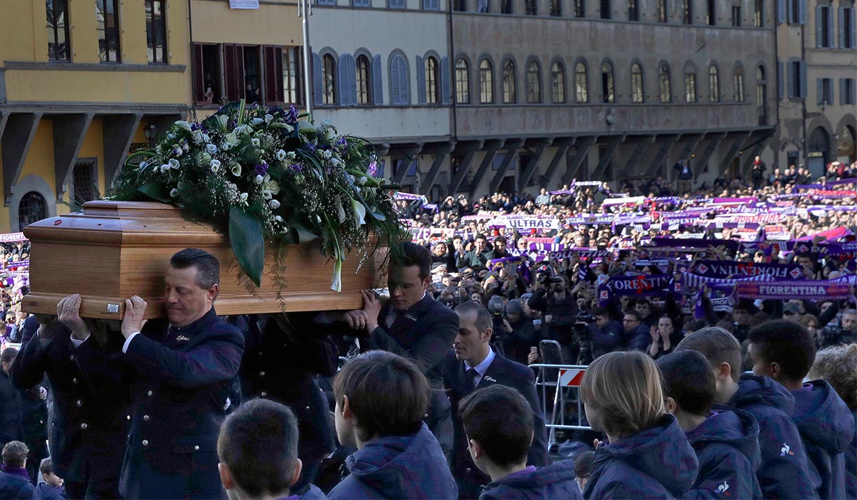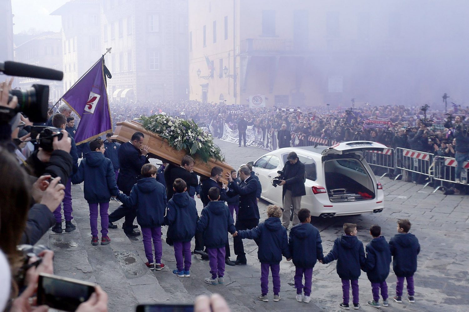 حضر الآلاف من مشجعي “فيورونتينا” مراسم تشييع جنازة قائد فريقهم “دافيد أستوري” الذي توفي الأحد الماضي بسبب سكتة قلبية في فندق الفريق.