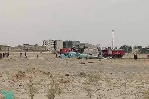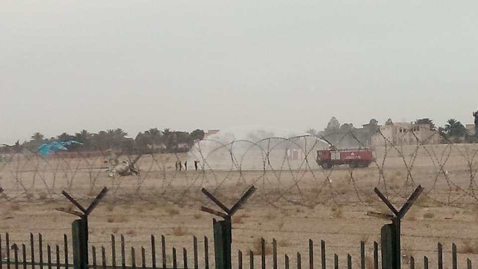 بالفيديو والصور.. سقوط طائرة هليكوبتر عسكرية بمطار قمار في الوادي