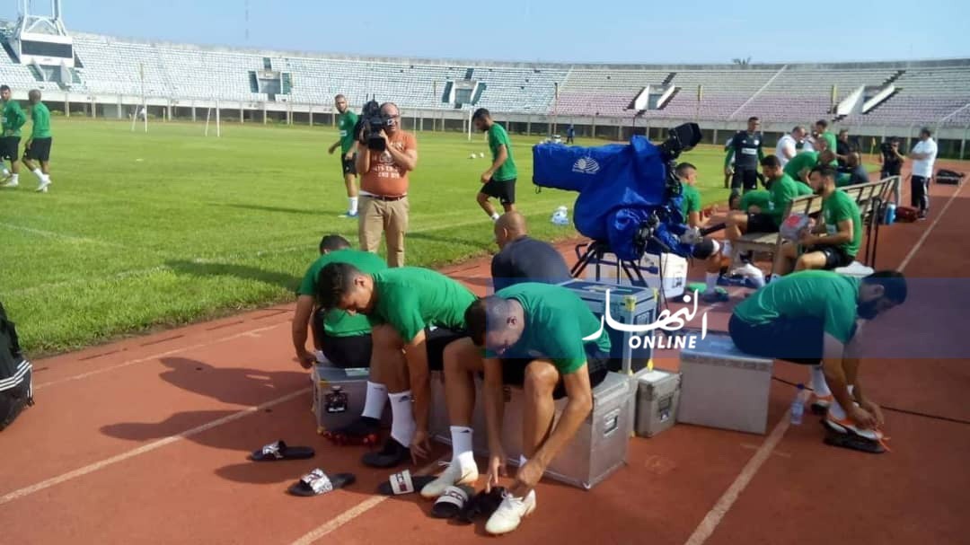 بالفيديو والصور.. لاعبو الخضر يضطرون لتغيير ملابسهم على أرضية الميدان في البنين