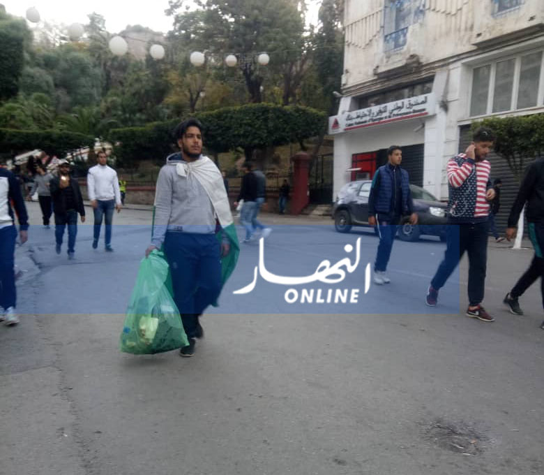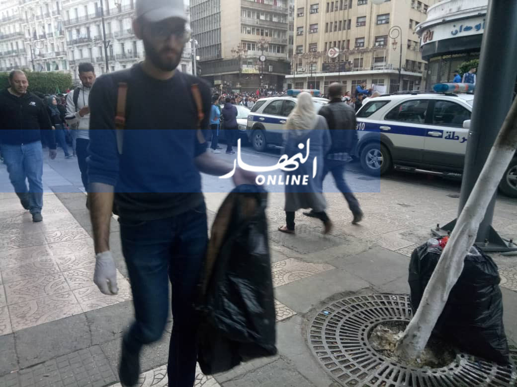 وقد عمد الكثير من المتظاهرين لحمل أكياس القمامة ومخلفات المتظاهرين وجمعها في اماكن مخصصة لتخلص منها من قبل عمال النظافة.