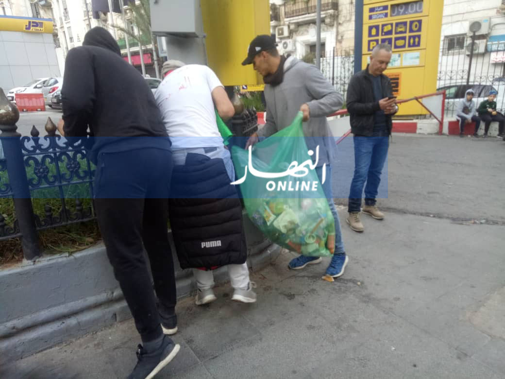 رصدت النهار مظاهر تعاون الشباب المتظاهر مع أعوان النظافة في تطهير وإزالة مخلّفات المتظاهرين.