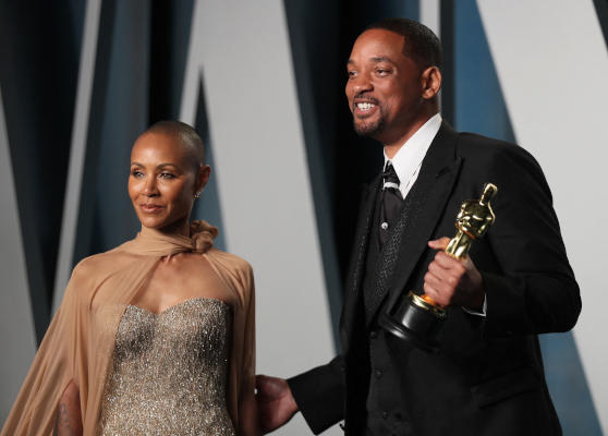 كما سخر روك من تسريحة شعر زوجة سميث، جادا بينكيت سميث، المشار إليها في فيلم “جي آي جين”. الذي حلقت فيه الممثلة ديمي مور شعر رأسها. وسار سميث على خشبة المسرح وصفع روك، فيما بدا للوهلة الأولى أنه مزحة مكتوبة مسبقا.