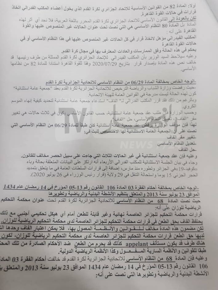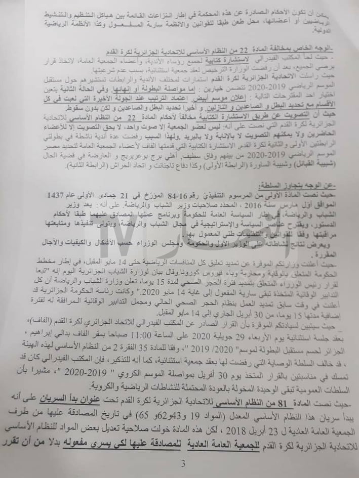 ويتعلق الأمر بالقرار الصادر عن الإتحادية الجزائرية لكرة القدم، والمتعلق بوقف البطولة الوطنية المحترفة لكرة القدم.