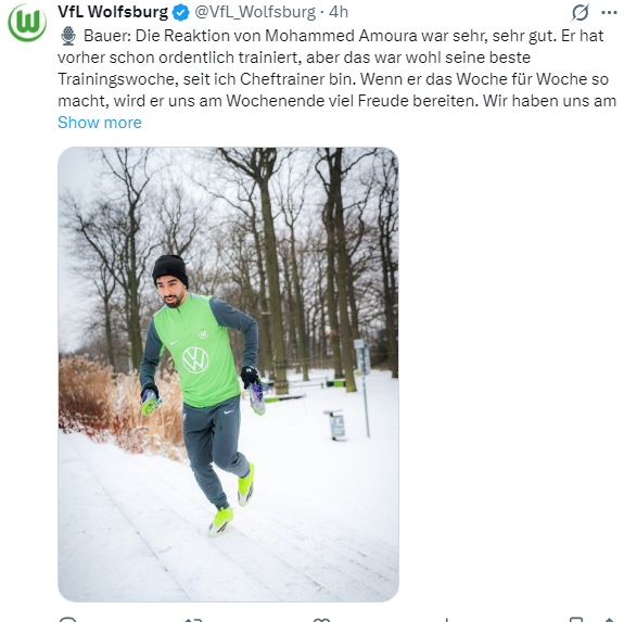 وخلال الندوة الصحفية التي سبقت مواجهة فولفسبورغ القادمة في الدوري الألماني، قال باور: “ردّة فعل محمد عمورة كانت جيدة جدًا. كان يتدرّب بشكل جيّد من قبل، لكن هذا الأسبوع كان على الأرجح الأفضل له منذ أن أصبحت مدربًا أولًا للفريق”.