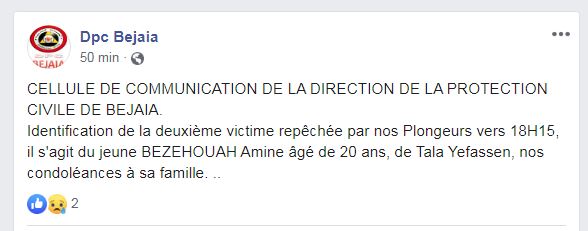 حددت مصالح الحماية المدنية هوية الجثتين التي تم إنتشالهما من سد إيغيل أمدا بخراطة شرق ولاية بجاية.