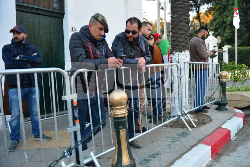 ومن المتواجدين، أمام قصر الشعب، رئيس بلدية الجزائر الوسطى عبد الحكيم بطاش.