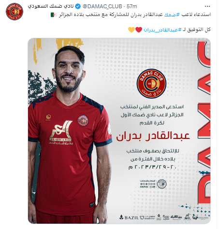 بدران يستدعى لتربص “الخضر” تحسبا لمواجهتي النيجر