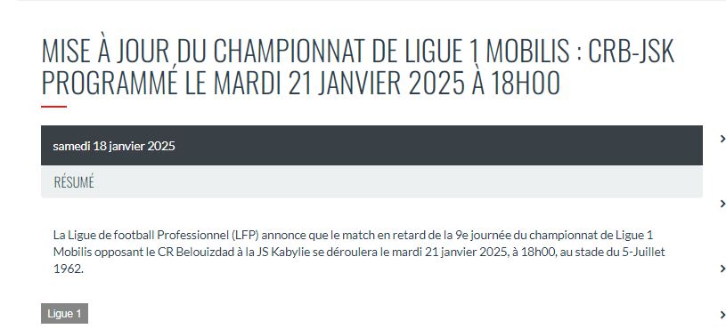حددت الرابطة المحترفة لكرة القدم، يوم الثلاثاء 21 جانفي الجاري، موعدا للقمة الكروية بين شباب بلوزداد والضيف شبيبة القبائل.