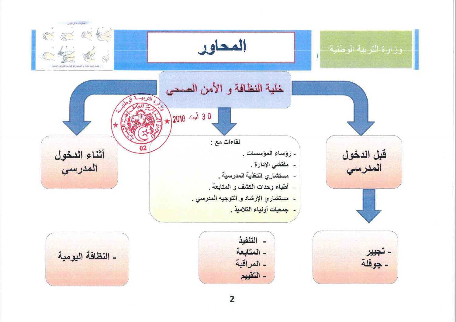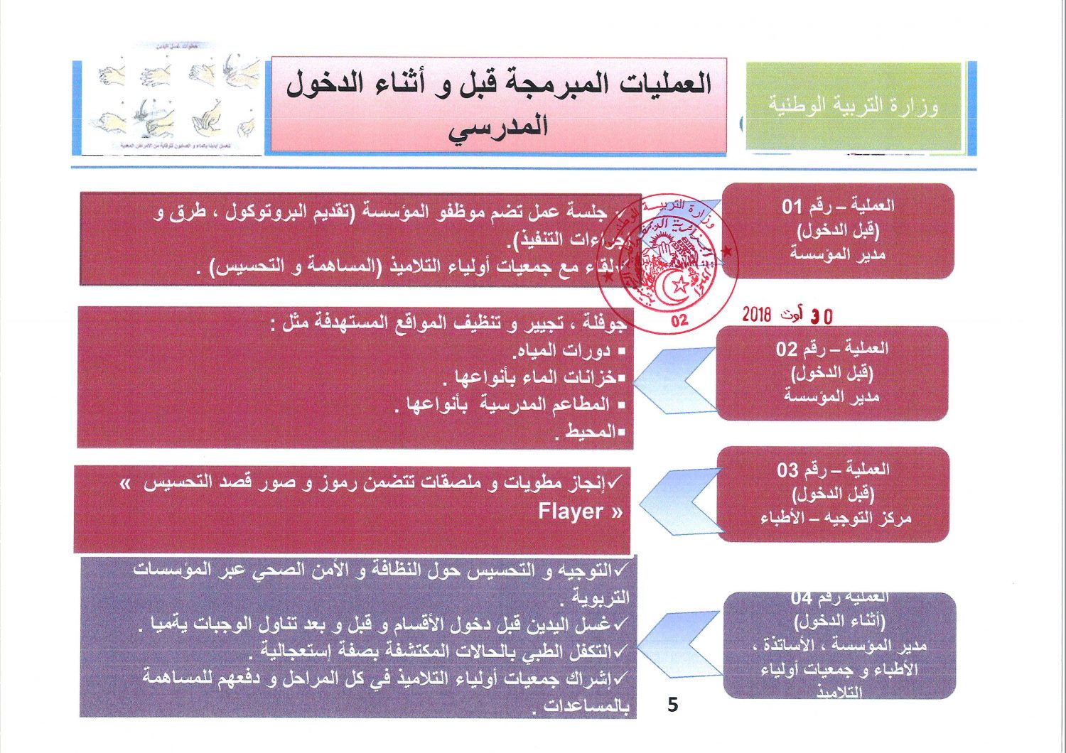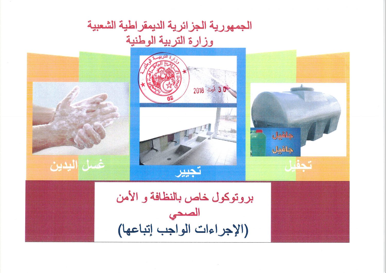 سنت وزارة التربة الوطنية بروتوكول خاص بالنظافة والامن الصحي على مستوى المؤسسات التعليمية عبر الوطن.