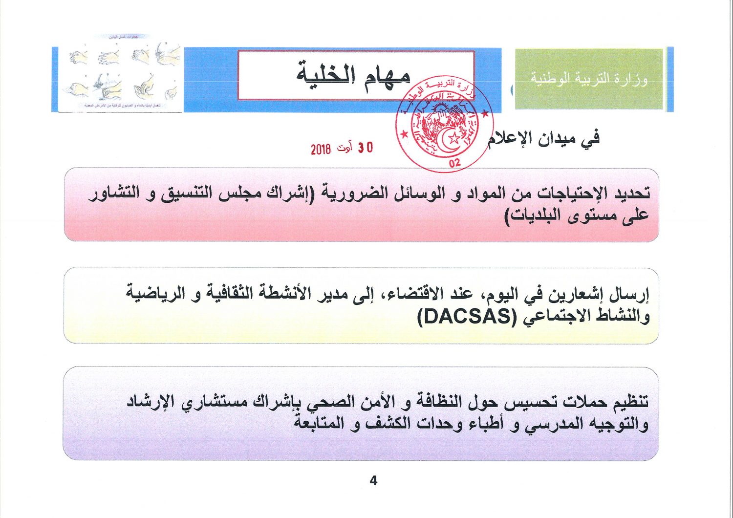 تنفيذا لتعليمات وزيرة التربية الوطنية، نورية بن غبريت القاضية بمواصلة تنظيم الحياة المدرسية.