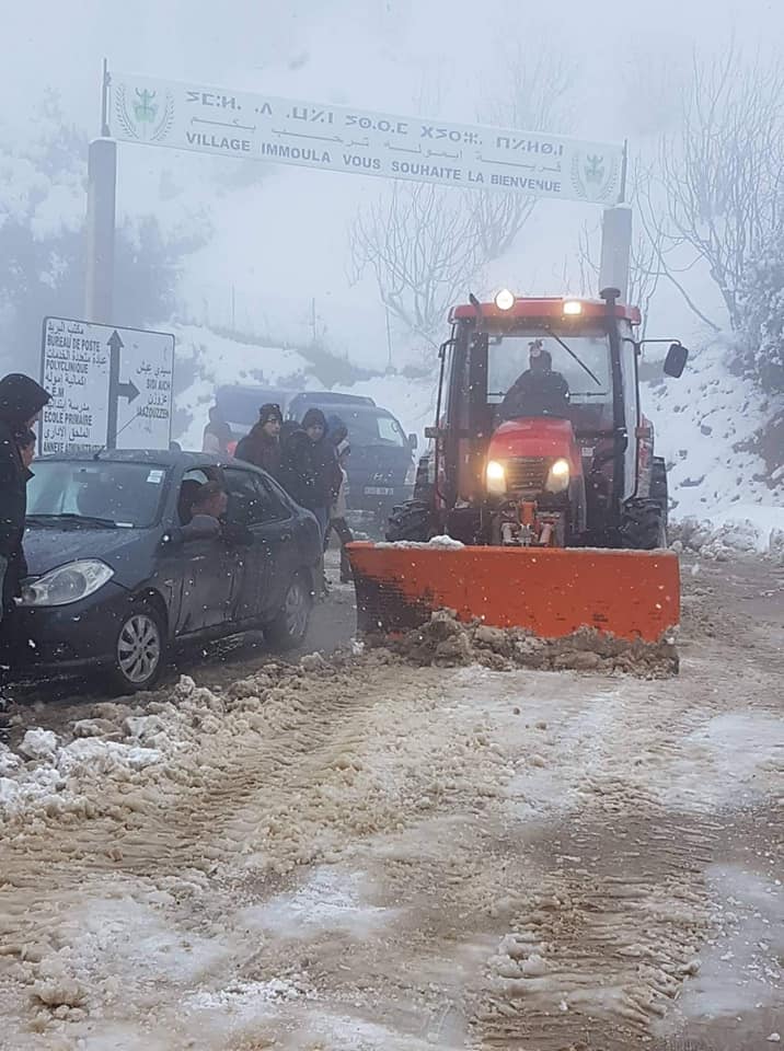 إلا أن  عمال الأشغال العمومية وجدوا صعوبات لفتح الطرق والممرات بسبب وجود توافد المواطنين على مستوى الطريق الولائي رقم 22 بأغبالة أيت جليل.
