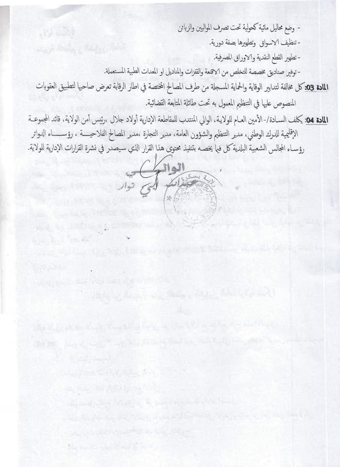 وحسب بيان مصالح الولاية فقد حدد القرار اجراءات مرافقة لهذا الفتح تتعلق بتدابير الوقاية من وباء كوفيد 19 .