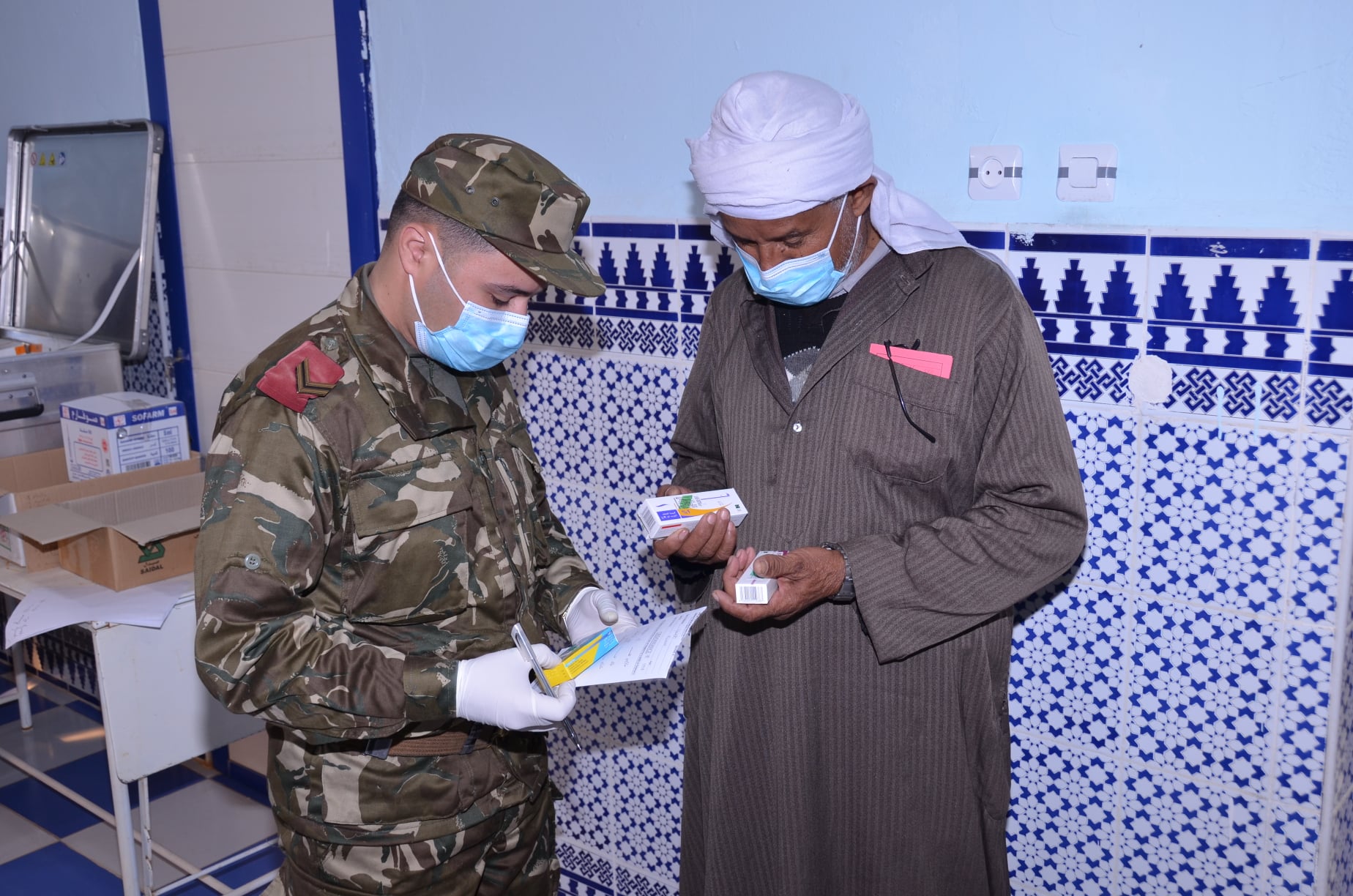 وذلك من خلال مراقبة الضغط الشرياني وقياس نسبة السكر في الدم، وكذا توزيع كميات من الأدوية بوصفات طبية بعد الفحص.