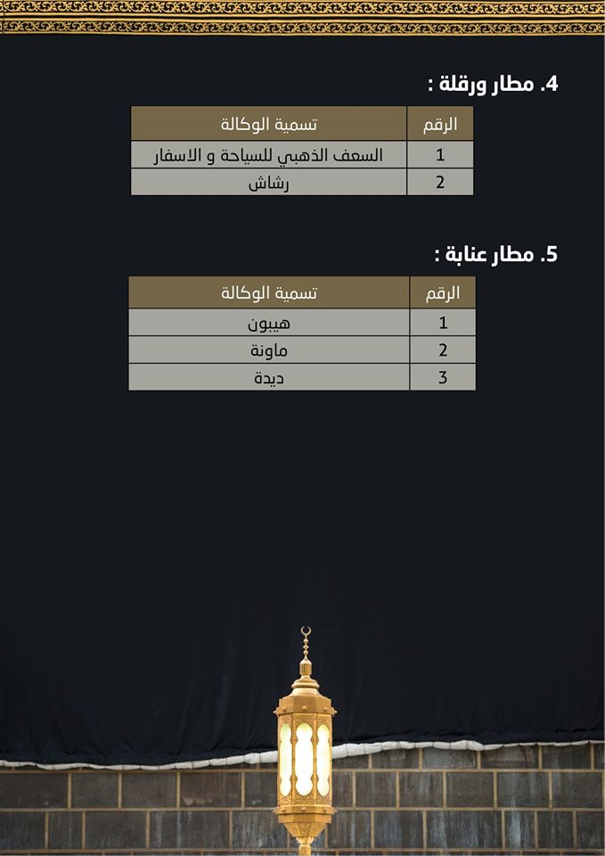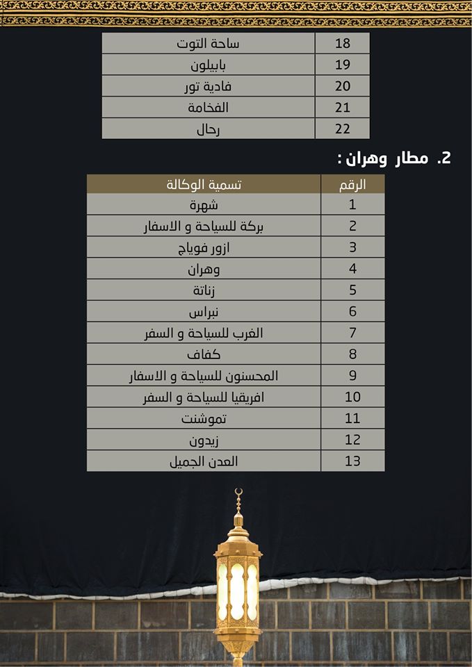 هذه القائمة يقول البيان انها جاءت بموجب دفتر الشروط المعلن عنه، وهي تشجيعا لهذه الوكالات لتقديم خدمات مميزة للحجاج.