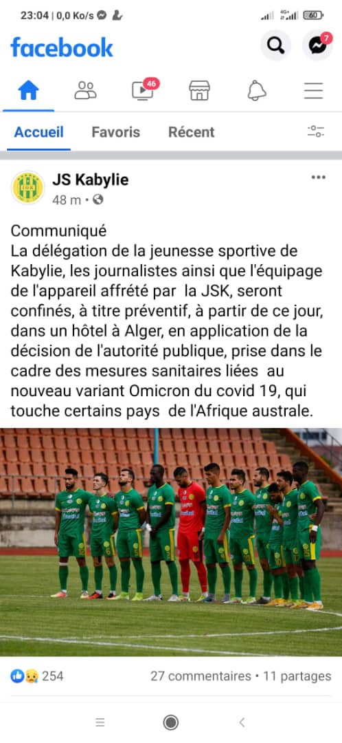 أعلن فريق شبيبة القبائل اليوم الإثنين خضوع وفد الكناري للحجر الصحي بعد عودته من إسواتيني.