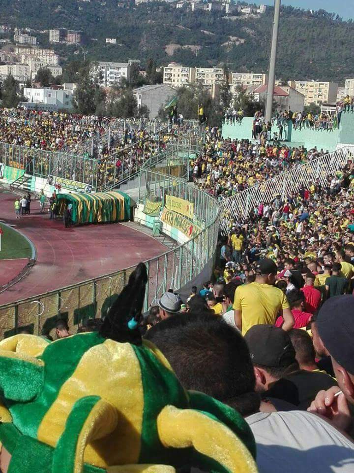 ويشهد ملعب “01 نوفمبر” بتيزي وزو، حضور جماهيري قياسي، لأنصار الشبيبة، لم يشهده ملعب “01 نوفمبر” منذ سنوات.